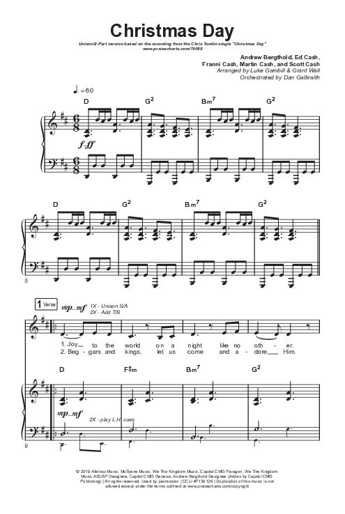 Christmas Day (Unison/2-Part Choir) Octavo Sheet Music PDF (Chris Tomlin / We The Kingdom / Arr. Luke Gambill)