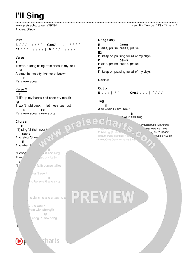 I'll Sing Chords PDF (Andrea Olson)