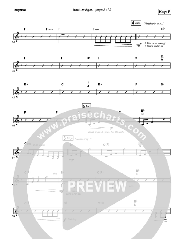 Download the Rhythm Chart for Rock Of Ages by The Worship Initiative / Dinah Wright / Grace Tanner, from the album Behold: The Story. This song was arranged by Mason Brown / Daniel Galbraith in the key of F, G.