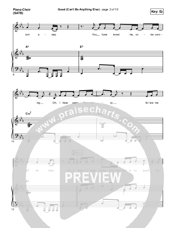 Download the PDF sheet music for Good (Can't Be Anything Else) by Cody Carnes, from the album God Is Good!. This song was arranged by Grant Wall / Daniel Galbraith in the key of D, Eb.