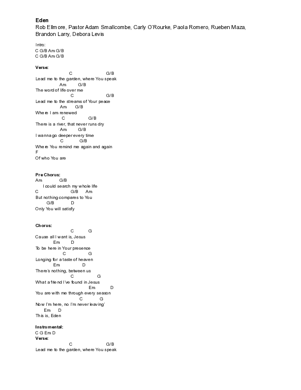 Download the PDF Chord Charts for Eden by Vive Worship, from the album Eden.
