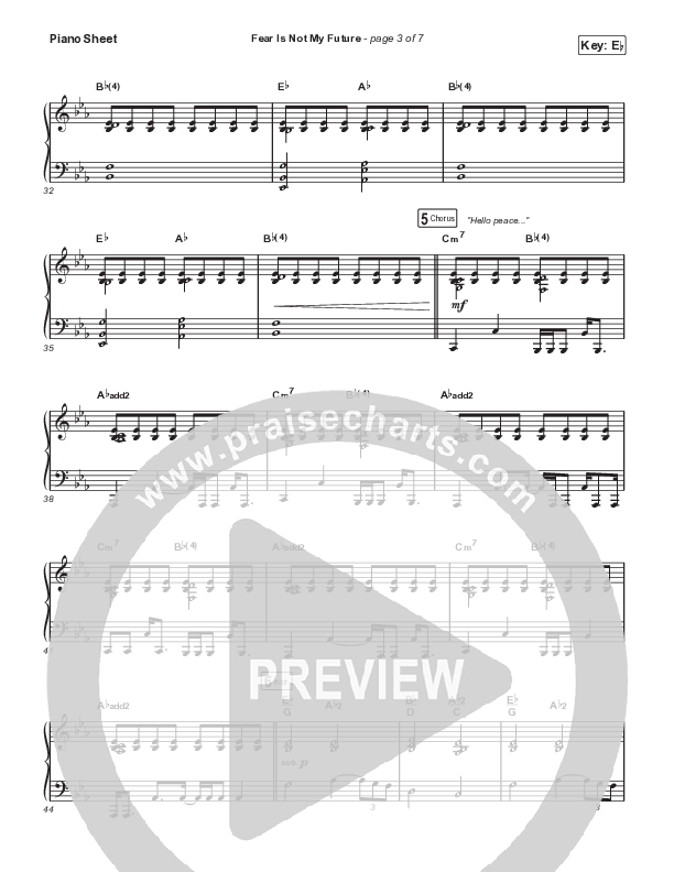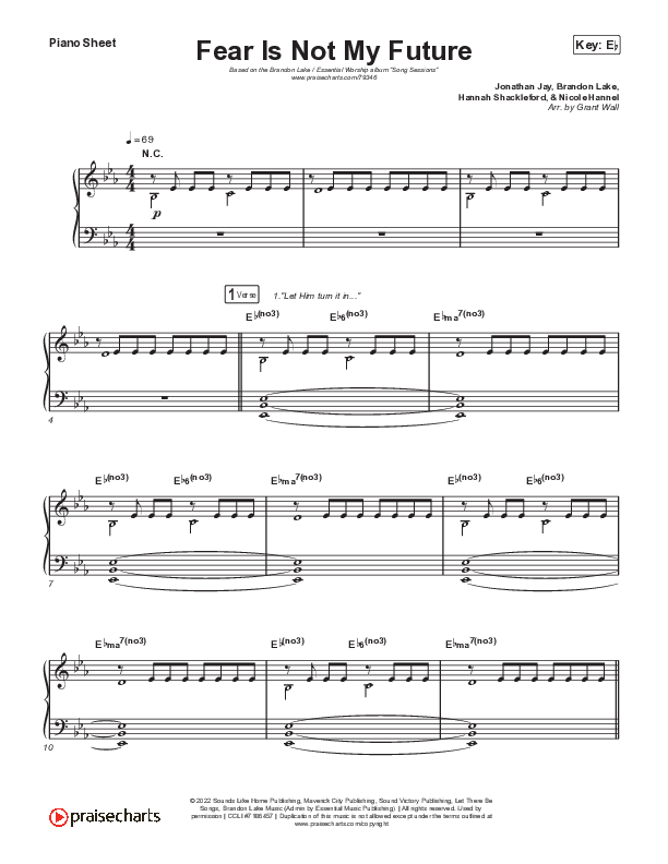 Download the piano sheet for Fear Is Not My Future by Brandon Lake / Essential Worship, from the album Song Sessions. This song was arranged by Grant Wall in the key of D, Eb.