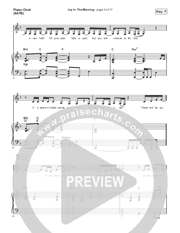 Download the sheet music for Joy In The Morning by Tauren Wells, from the album Joy In The Morning. This song was arranged by Grant Wall in the key of Eb, F.