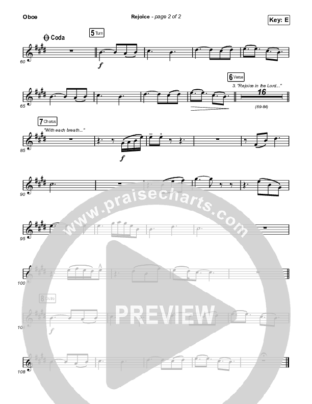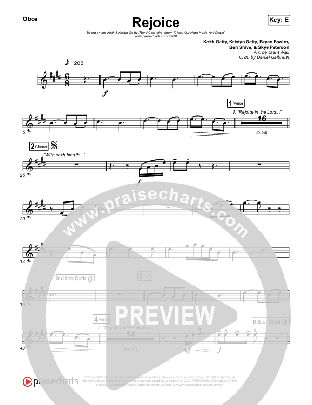 Download the Oboe sheet music for Rejoice by Keith & Kristyn Getty / Rend Collective, from the album Christ Our Hope In Life And Death. This song was arranged by Grant Wall / Daniel Galbraith in the key of E, Eb.