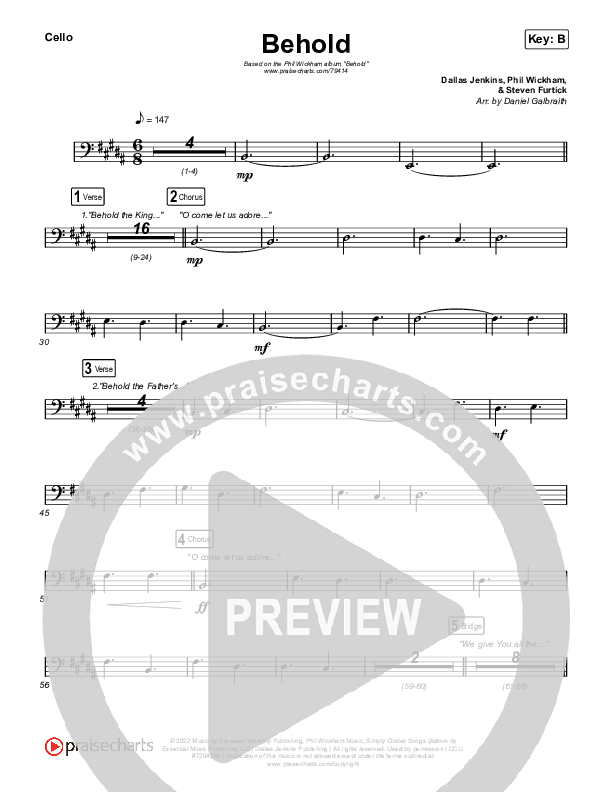 Behold Cello Sheet Music PDF (Phil Wickham / Anne Wilson)