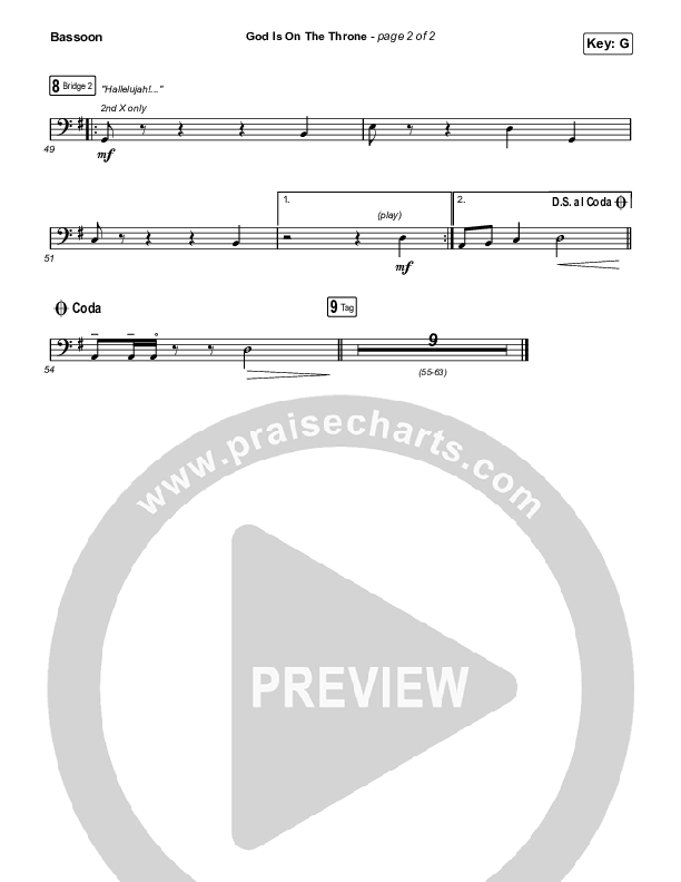 Download the Bassoon sheet music for God Is On The Throne (Unison/2-Part Choir) by We The Kingdom / Arr. Mason Brown, from the album We The Kingdom. This song was arranged by Mason Brown / Daniel Galbraith in the key of G.