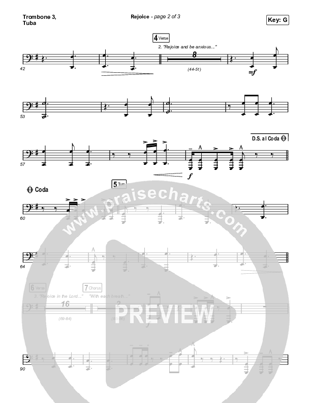 Rejoice (Unison/2-Part Choir) Trombone/Tuba Sheet Music PDF (Keith & Kristyn Getty / Rend Collective / Arr. Mason Brown)