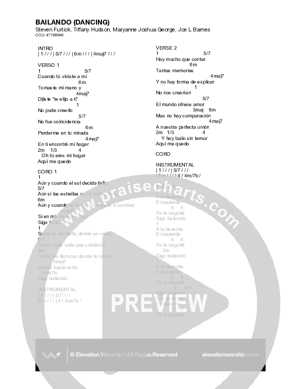 Bailando (Dancing) Chord Chart (Elevation Worship / Jonsal Barrientes / Tiffany Hudson)
