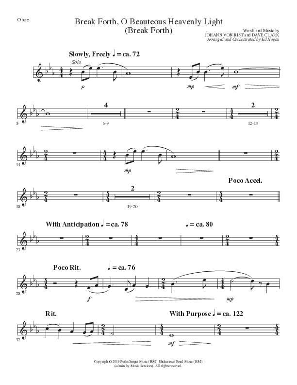 Download the Oboe sheet music for Break Forth O Beauteous Heavenly Light (Break Forth) (Choral Anthem SATB) by Lillenas Choral / Arr. Ed Hogan, from the album Christmas Choral Anthems. This song was arranged by Ed Hogan in the key of Eb.