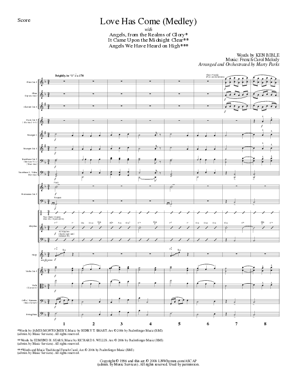 Download the Orchestration for Love Has Come (with Angels From The Realms Of Glory, It Came Upon A Midnight Clear, Angels We Have H (Choral Anthem SATB) by Lillenas Choral / Arr. Marty Parks, from the album Christmas Choral Anthems. This song was arranged by Marty Parks in the key of F.