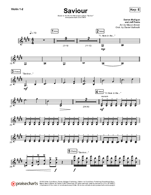 Download the Orchestration string parts for Saviour by We Are Messengers, from the album Saviour. This song was arranged by Mason Brown / Daniel Galbraith in the key of D, E.