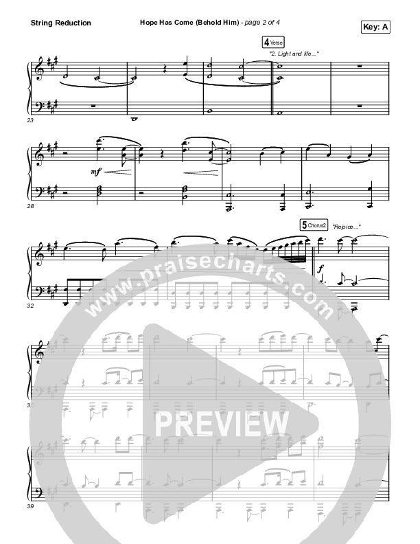 Hope Has Come (Behold Him) String Reduction Sheet Music PDF (Red Rocks Worship)