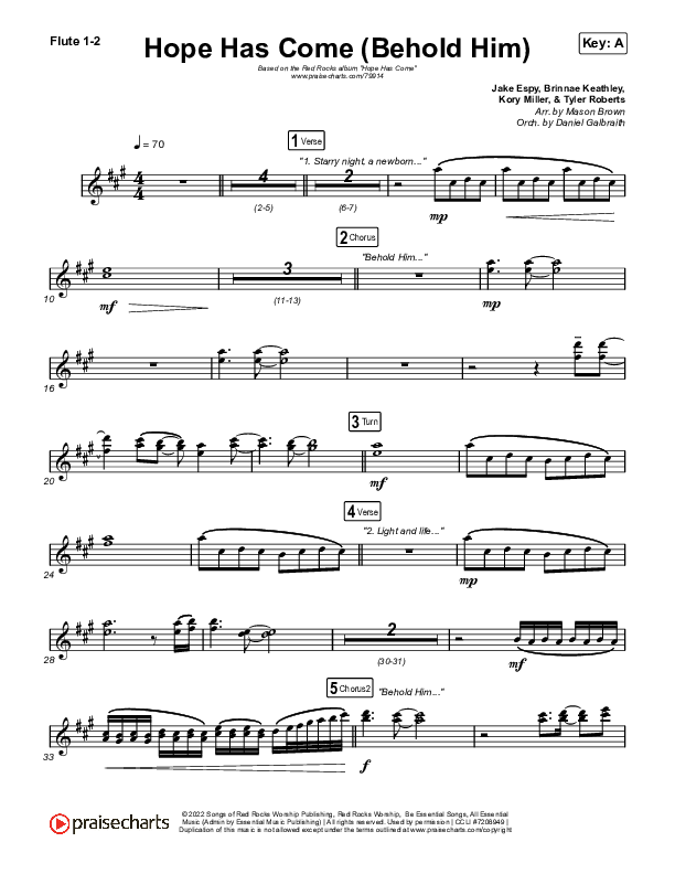 Download the Orchestration wind parts for Hope Has Come (Behold Him) by Red Rocks Worship, from the album Hope Has Come. This song was arranged by Mason Brown / Daniel Galbraith in the key of A, G.