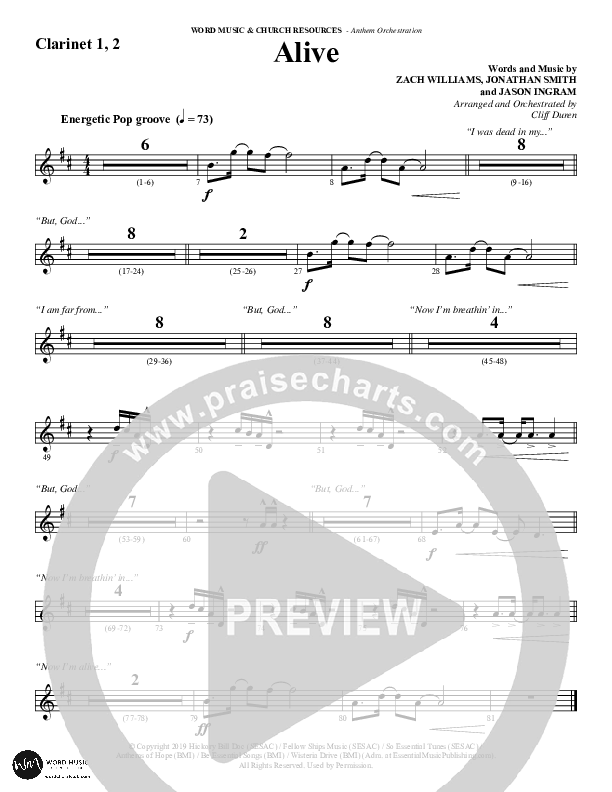 Alive (Choral Anthem SATB) Clarinet Sheet Music PDF (Word Music Choral / Arr. Cliff Duren)