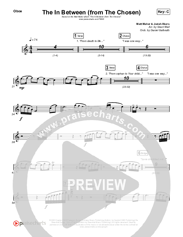 Download the Orchestration wind parts for The In Between (From The Chosen) by Matt Maher, from the album The In Between (From The Chosen). This song was arranged by Grant Wall / Daniel Galbraith in the key of Bb, C.