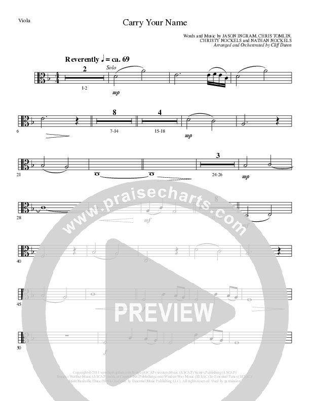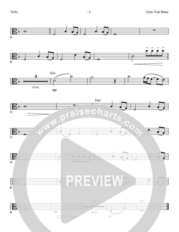 Carry Your Name (Choral Anthem SATB) Viola Sheet Music PDF (Arr. Cliff Duren / Lillenas Choral)