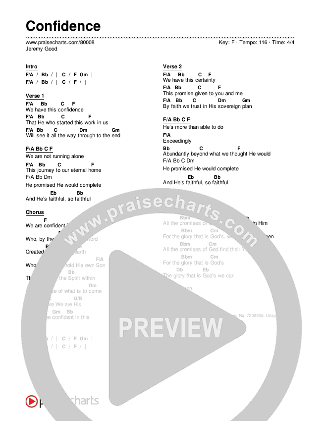 Download the PDF Chord Charts for Confidence by Jeremy Good, from the album Confidence.