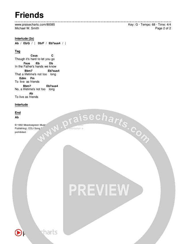Friends Chords PDF (Michael W. Smith)