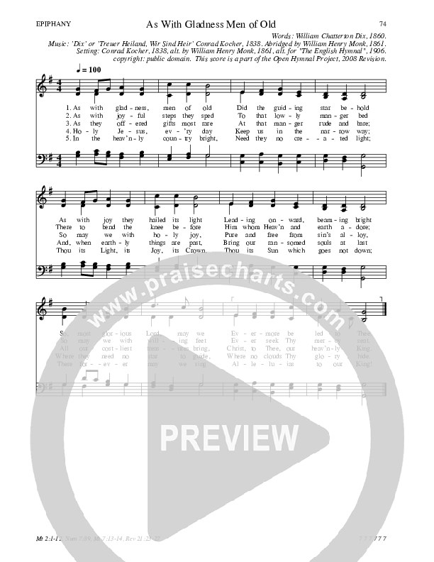 As With Gladness Men of Old Hymn Sheet (Traditional Hymn)