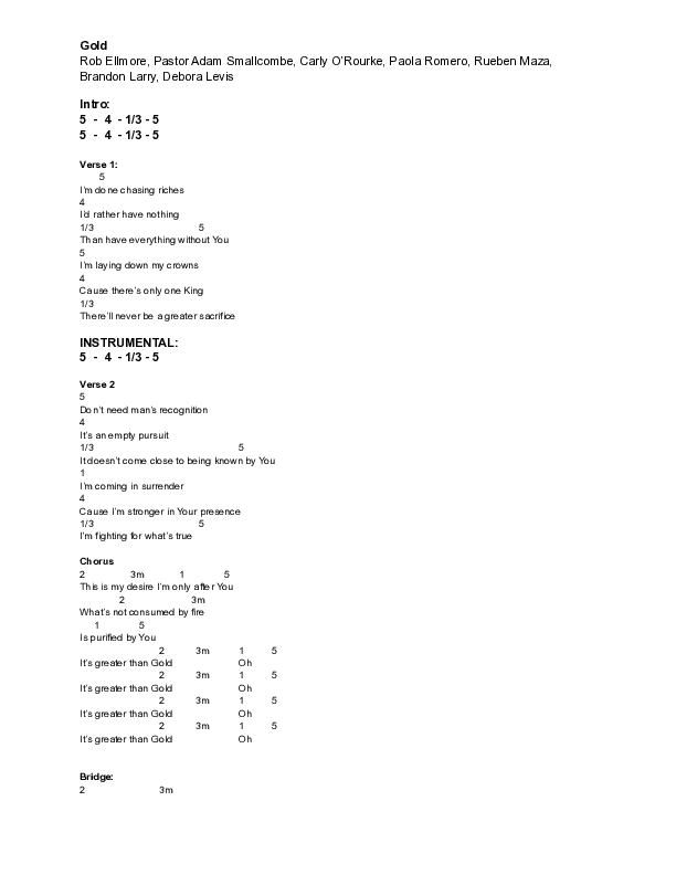 Download the PDF Chord Charts for Gold by Vive Worship, from the album Genesis.