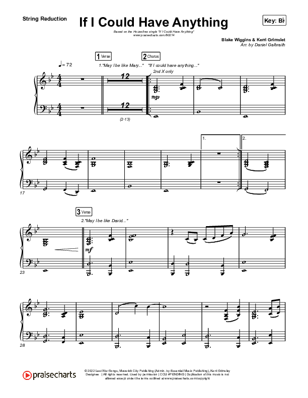 Download the String Reduction sheet music for If I Could Have Anything by Housefires / Ahjah Walls / Blake Wiggins, from the album If I Could Have Anything. This song was arranged by Daniel Galbraith in the key of Bb, C.