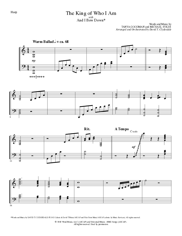 © "The King Of Who I Am", 1983 Universal Music - Brentwood Benson Publishing (Admin. by Brentwood-Benson Music Publishing), Curb Word Music (Admin. by WC Music Corp.), "And I Bow Down", 2012 Celeste & David T Music, Pilot Point Music (Admin. by Music Services) CCLI Song No. 66081