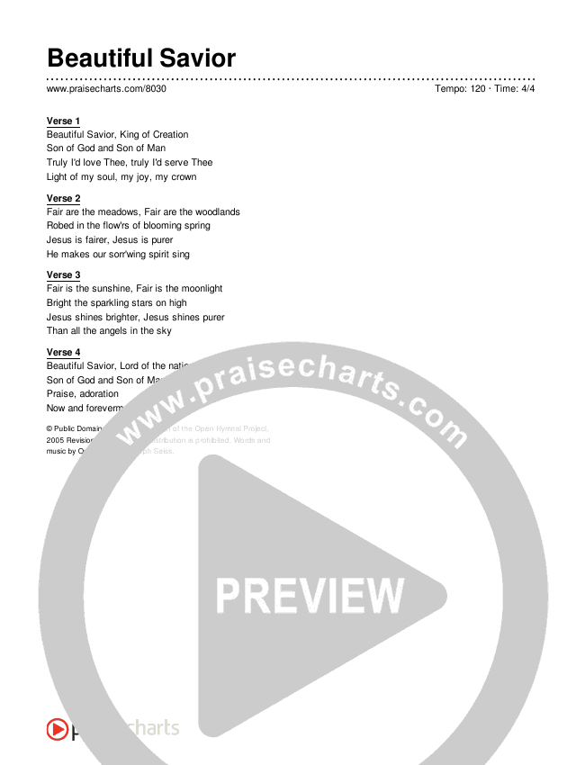 Beautiful Savior Chords PDF (Traditional Hymn)
