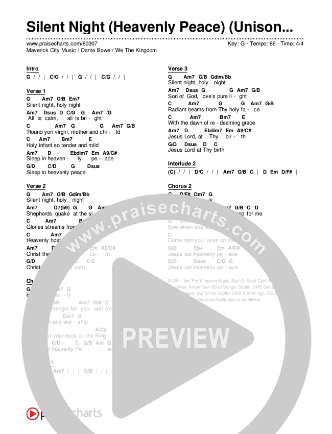 Silent Night (Heavenly Peace) (Unison/2-Part Choir) Chords PDF (We The Kingdom / Dante Bowe / Maverick City Music / Arr. Mason Brown)