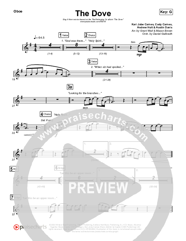 Download the Orchestration wind parts for The Dove (Sing It Now SATB) by The Belonging Co / Kari Jobe / Arr. Mason Brown, from the album The Dove. This song was arranged by Mason Brown / Daniel Galbraith / Grant Wall in the key of G.