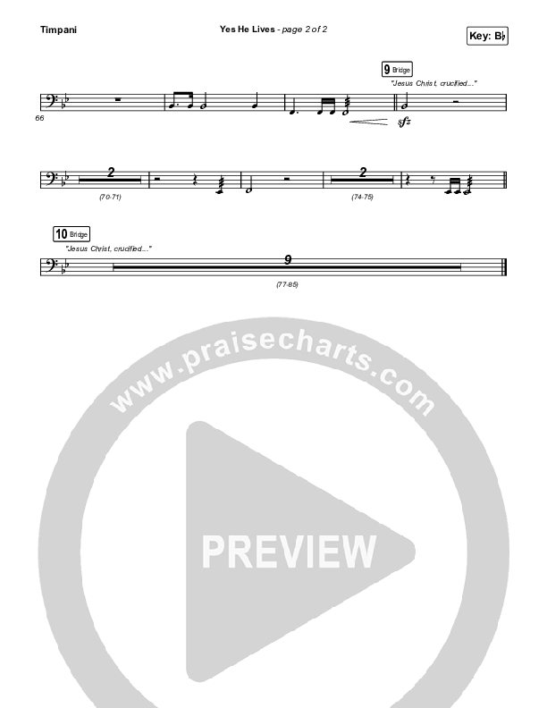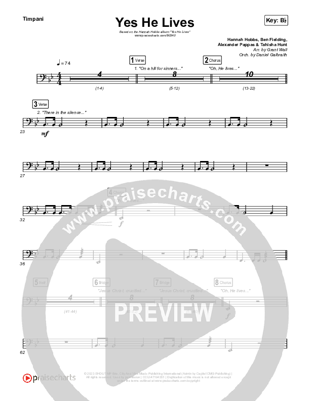Download the Timpani sheet music for Yes He Lives by Hannah Hobbs, from the album Sundown. This song was arranged by Daniel Galbraith / Grant Wall in the key of Bb, C.