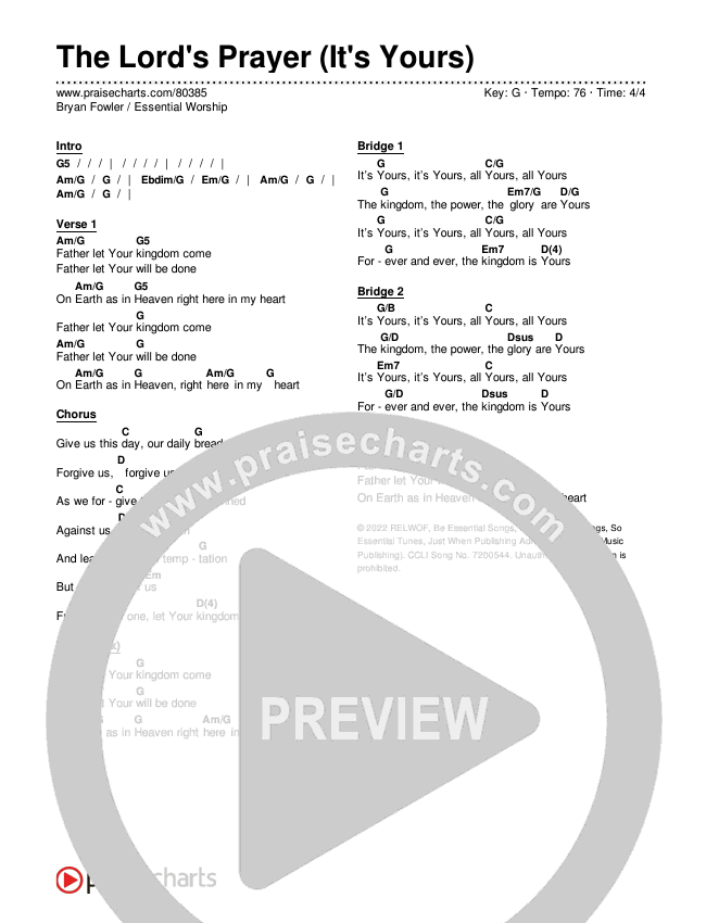 The Lord's Prayer (It's Yours) Chords PDF (Bryan Fowler / Essential Worship)