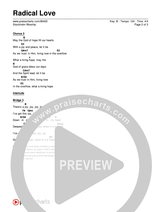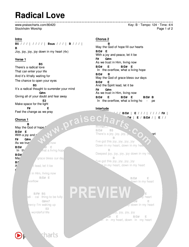 Download the PDF Chord Charts for Radical Love by Stockholm Worship, from the album Radical Love. This song was arranged by Daniel Galbraith in the key of B, Bb.