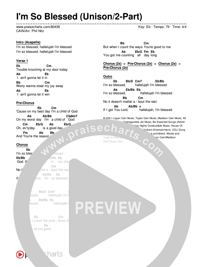 I'm So Blessed (Unison/2-Part) Chords PDF (CAIN / Arr. Phil Nitz)