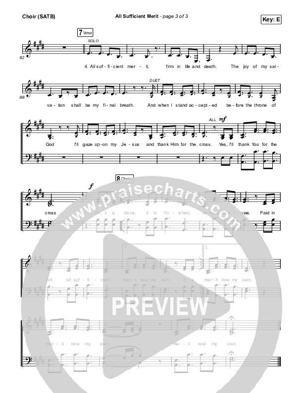 Download the Choir Sheet for All Sufficient Merit by The Worship Initiative / Bethany Barnard, from the album All Sufficient Merit. This song was arranged by Daniel Galbraith in the key of E, F.