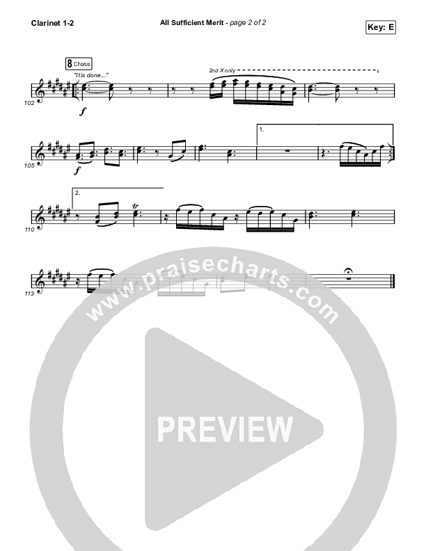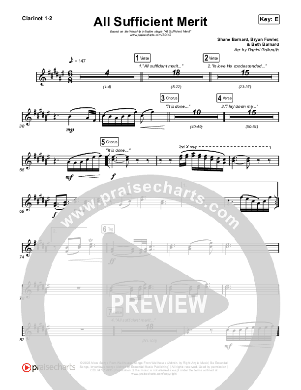 Download the Clarinet sheet music for All Sufficient Merit by The Worship Initiative / Bethany Barnard, from the album All Sufficient Merit. This song was arranged by Daniel Galbraith in the key of E, F.