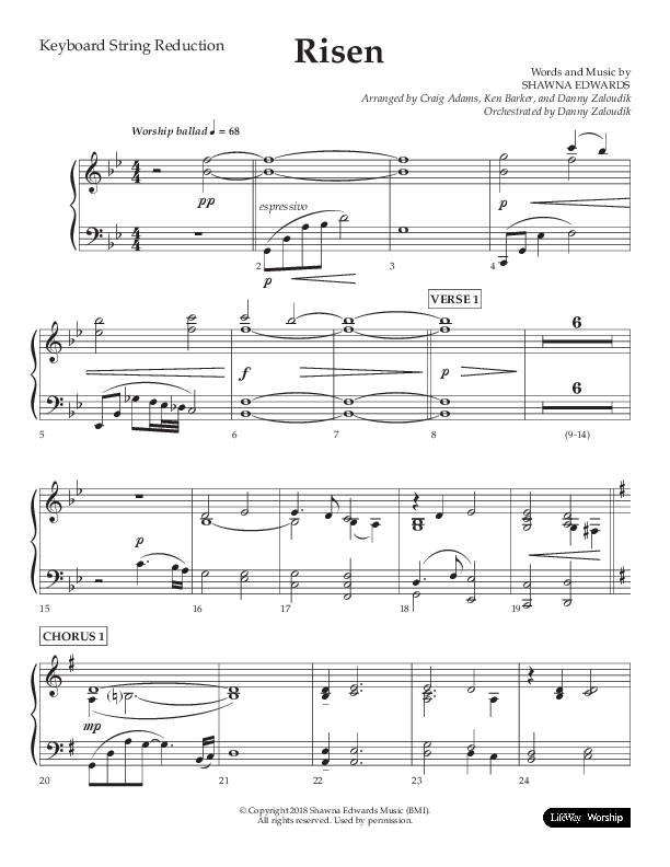 Risen (Choral Anthem SATB) String Reduction Sheet Music PDF (Lifeway Choral / Arr. Craig Adams / Arr. Ken Barker / Arr. Danny Zaloudik)