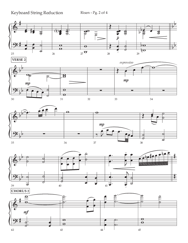 Download the String Reduction sheet music for Risen (Choral Anthem SATB) by Lifeway Choral / Arr. Craig Adams / Arr. Ken Barker / Arr. Danny Zaloudik, from the album Easter Choral Anthems. This song was arranged by Craig Adams / Ken Barker / Danny Zaloudik in the key of Bb.