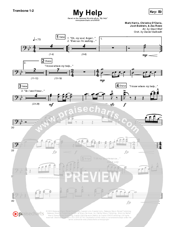 My Help Trombone Sheet Music PDF (Gateway Worship / Josh Baldwin)