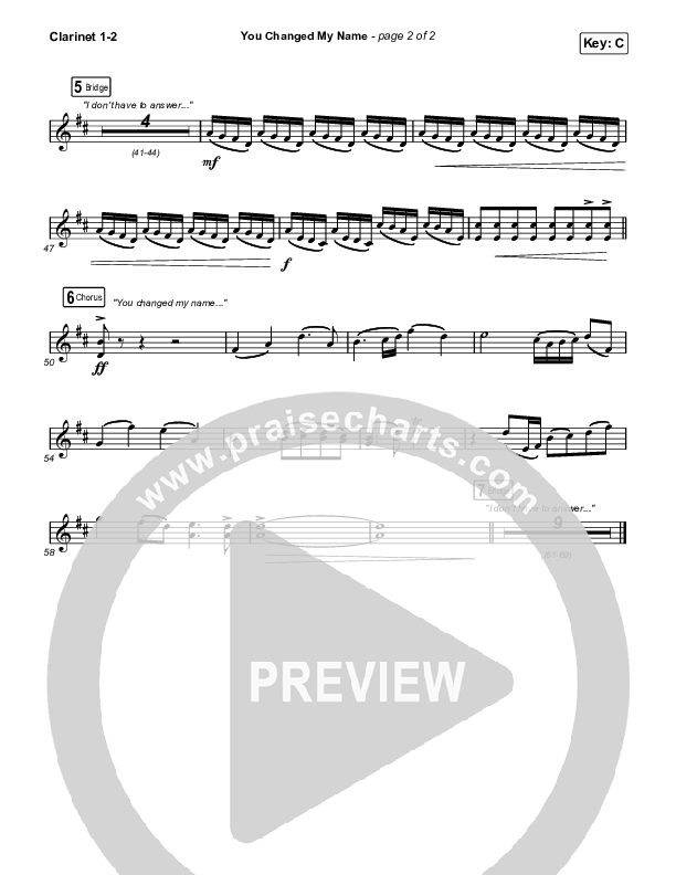 You Changed My Name Clarinet Sheet Music PDF (Matthew West)