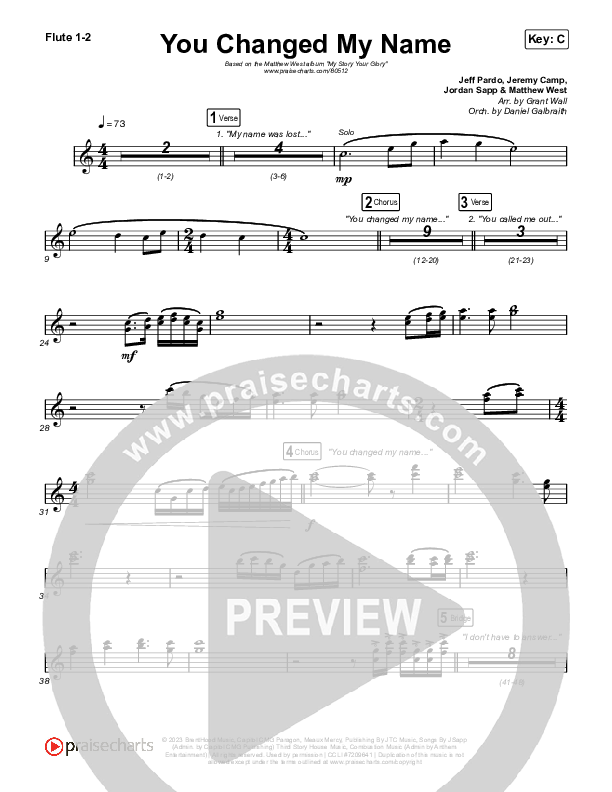 Download the Flute sheet music for You Changed My Name by Matthew West, from the album My Story Your Glory. This song was arranged by Grant Wall / Daniel Galbraith in the key of Bb, C.