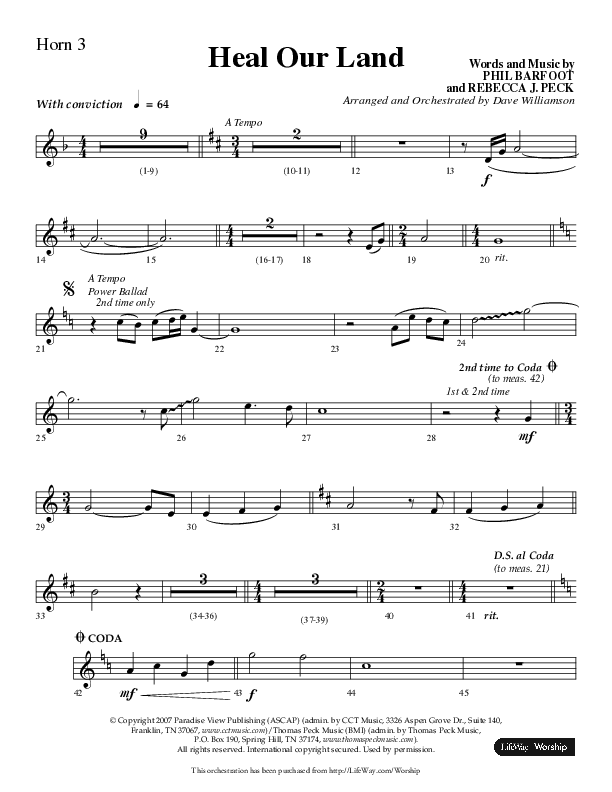 Lifeway Choral / Arr. Dave WilliamsonFrench Horn 3 Details