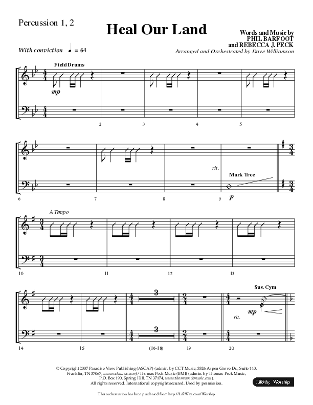 Lifeway Choral / Arr. Dave WilliamsonPercussion 1/2 Details