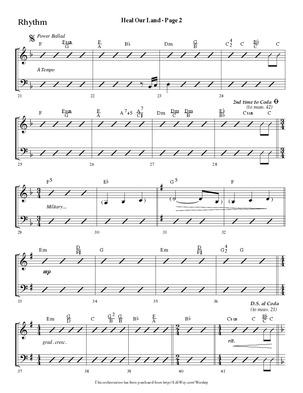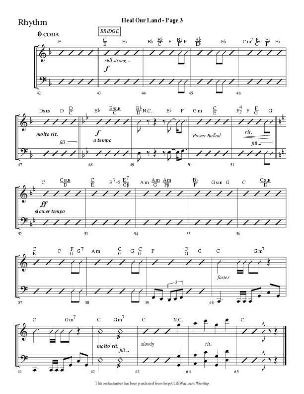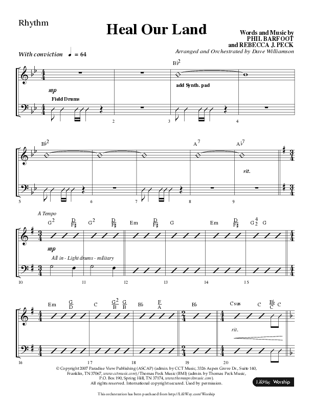 Download the Rhythm Chart for Heal Our Land (Choral Anthem SATB) by Lifeway Choral / Arr. Dave Williamson, from the album Patriotic Choral Anthems. This song was arranged by Dave Williamson in the key of Bb.