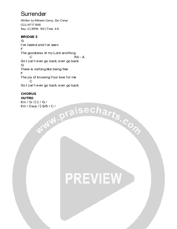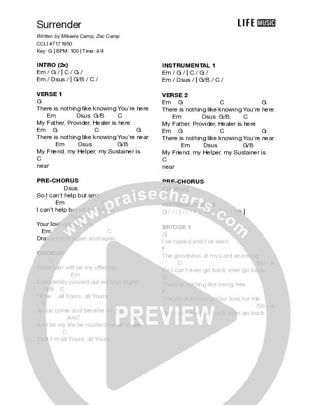 Download the PDF Chord Charts for Surrender by Life Music, from the album Worthy Lamb.