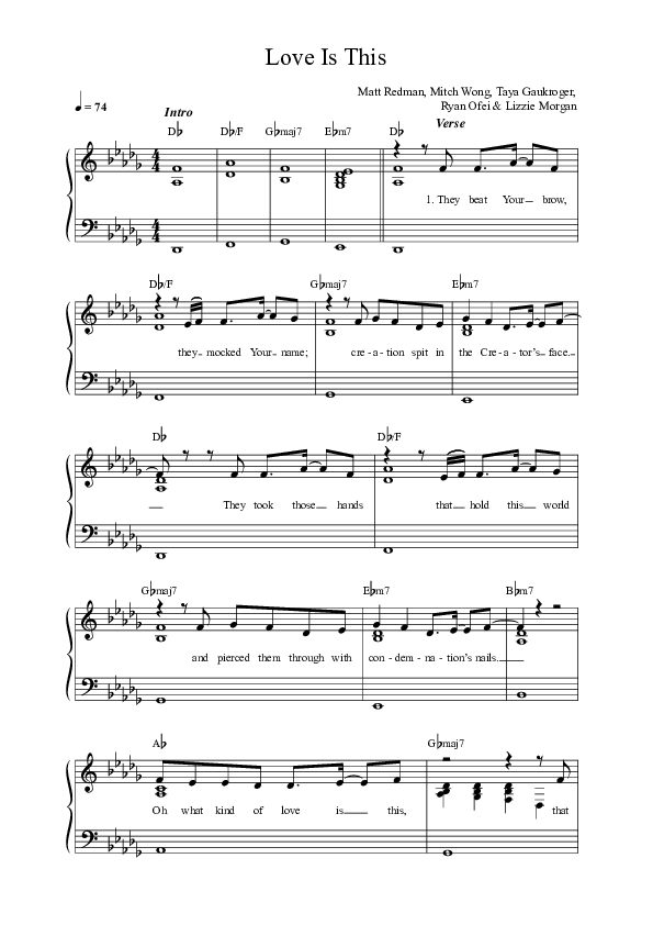 Download the sheet music for Love Is This (Live) by Matt Redman / May Angeles, from the album Lamb Of God (Live).