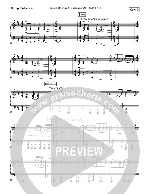 Download the String Reduction sheet music for Honest Offering / I Surrender All (Live) by CAIN, from the album Honest Offering. This song was arranged by Grant Wall / Daniel Galbraith in the key of C, D.