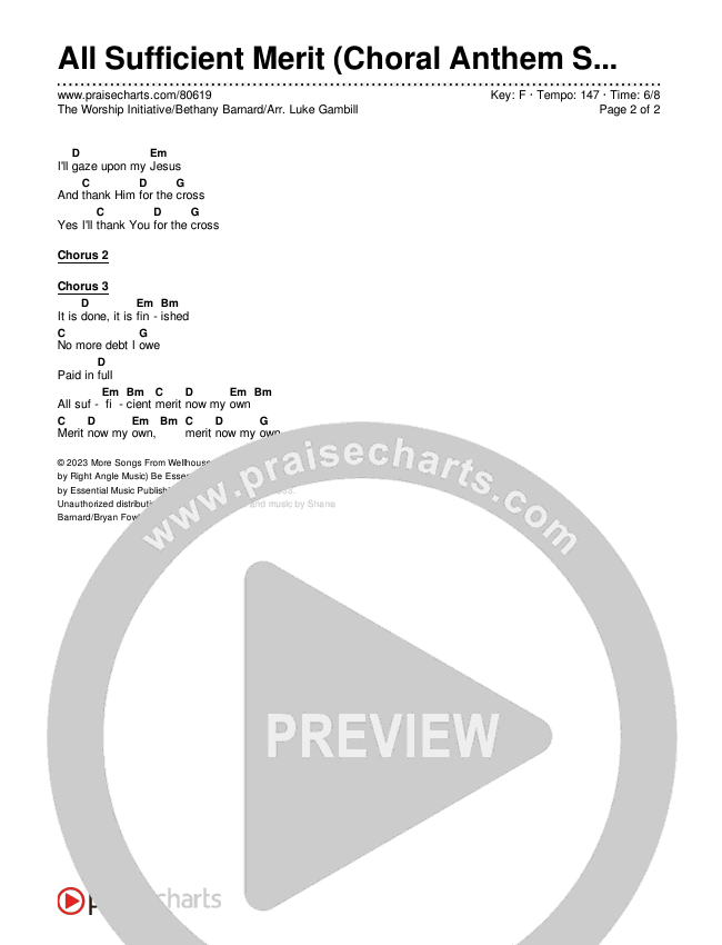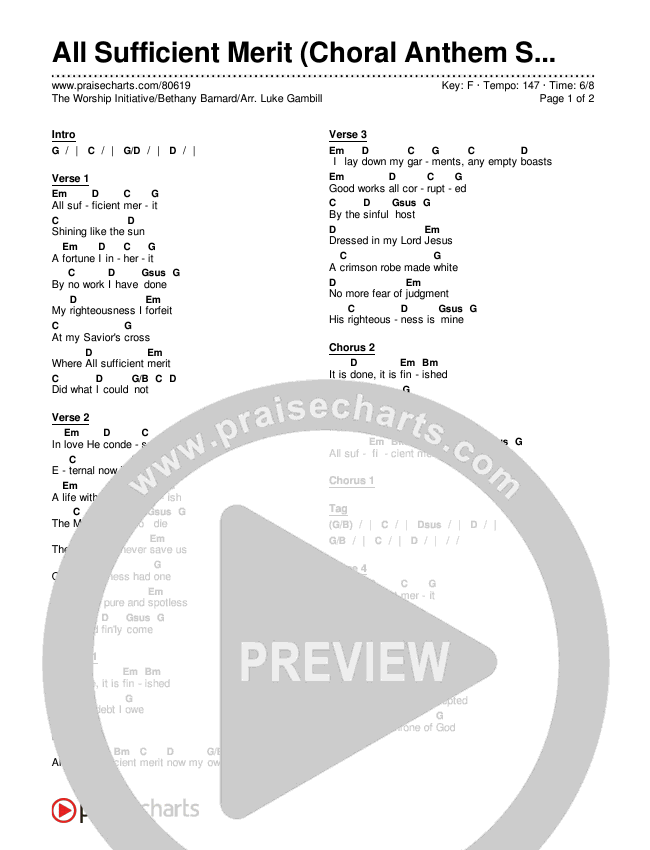 All Sufficient Merit (Choral Anthem SATB) Chords PDF (The Worship Initiative / Bethany Barnard / Arr. Luke Gambill)