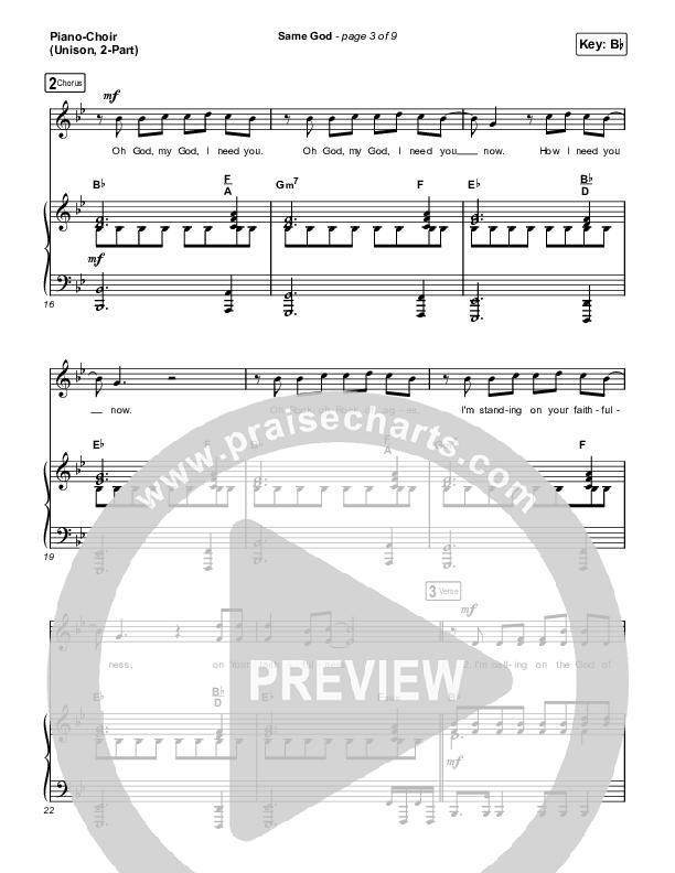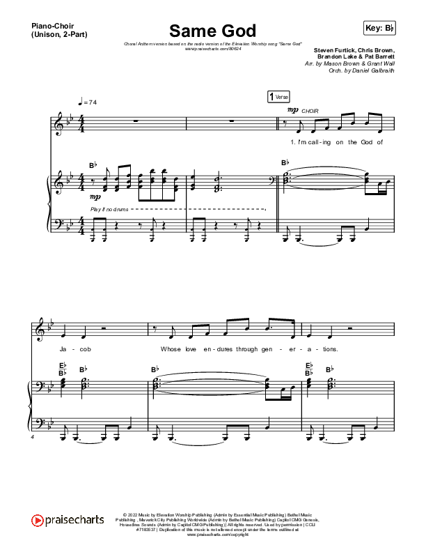 Download the PDF sheet music for Same God (Unison/2-Part) by Elevation Worship / Arr. Mason Brown, from the album Same God. This song was arranged by Mason Brown / Daniel Galbraith / Grant Wall in the key of Bb.