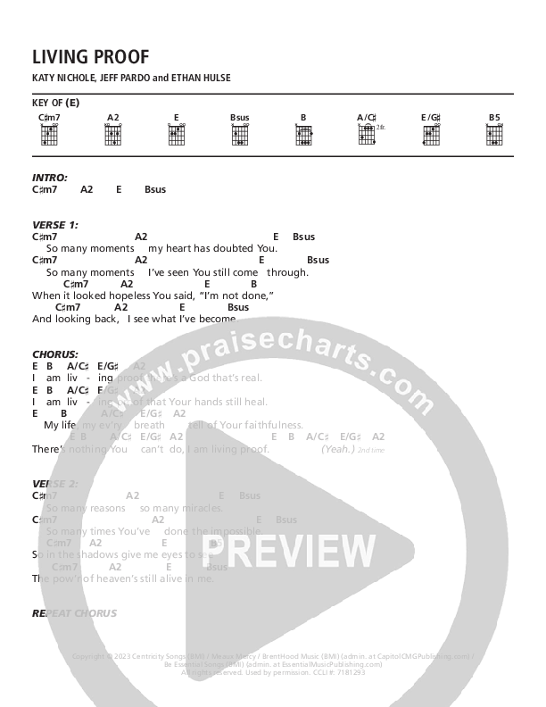 Download the PDF Chord Charts for Living Proof by Katy Nichole, from the album Jesus Changed My Life.