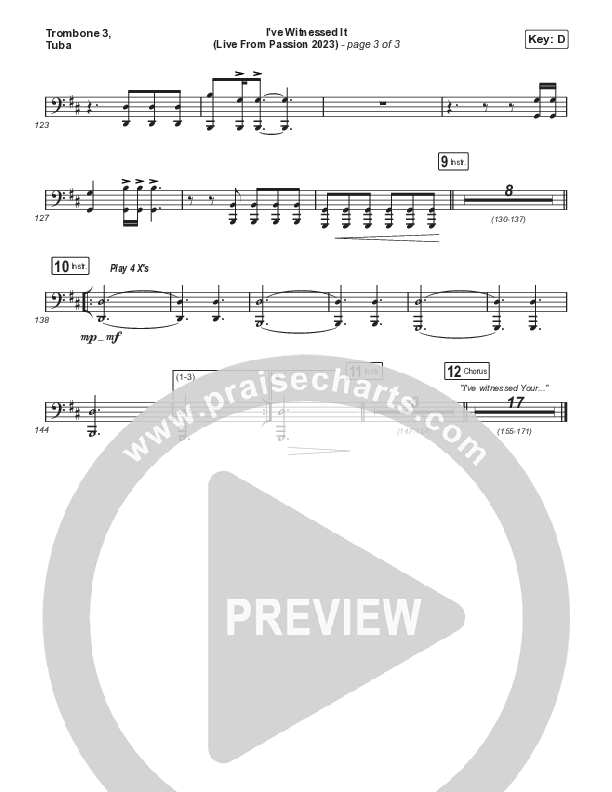 Download the Trombone 3/Tuba sheet music for I've Witnessed It (Unison/2-Part) by Passion / Melodie Malone / Arr. Mason Brown, from the album I've Witnessed It. This song was arranged by Mason Brown in the key of D.